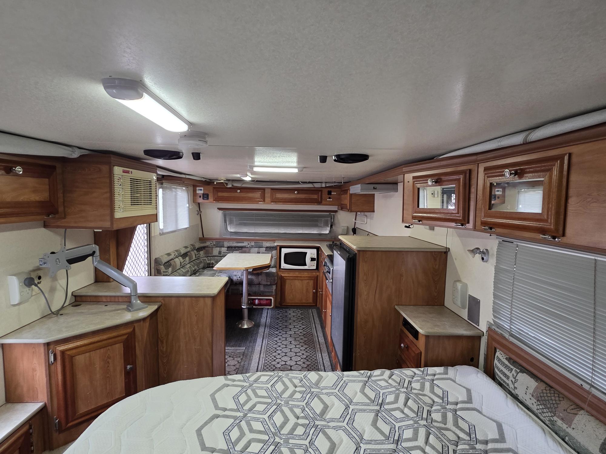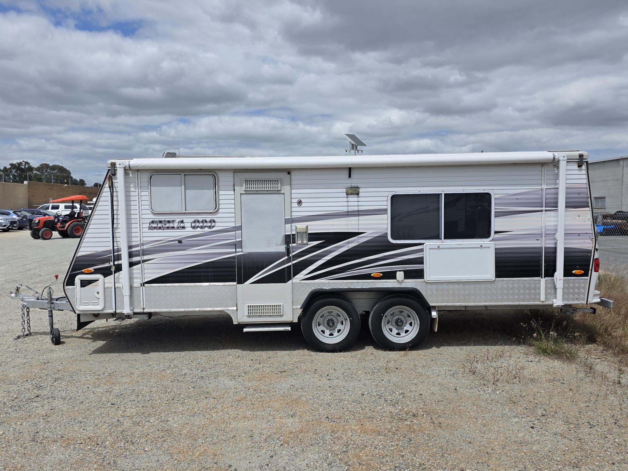 This 2004 Coromal Seka 600 PopTop Tandem Axle Caravan has upgraded Lithium Battery and 2000W Inverter with Provision for Solar Connection. The interior has a Queen Size Island Style Bed with plenty of Walk around space and a combo shower toilet with Privacy Door. It is fully equipped with a Reverse Cycle Aircon , Cooktop with Grill, Microwave and a nice L-shape lounge that can be converted into a 3rd Bed and comes with the Cushion.
